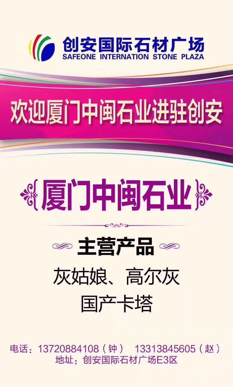 中閩實(shí)業(yè)集礦山開采,大板銷售,工程板(規(guī)格板)加工銷售,一條龍的石材企業(yè),公司自成立以來,通過專心,專注,專業(yè)的企業(yè)精神,服務(wù)于國內(nèi)外客戶,目前主營品種:雅柏白(灰),卡塔白,高爾灰,灰姑娘,新黑白根等,聯(lián)系人:趙先生,??:13313845605,工廠地址:延平大道115號(hào)佳磊石材