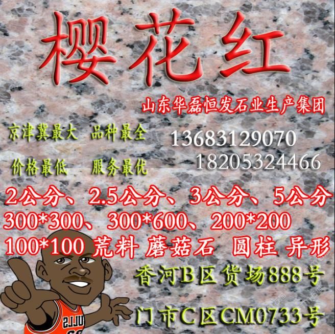 山東華磊恒發(fā)石業(yè)始建于1999年,擁有白麻礦山,櫻花紅礦山,先進的機器設(shè)備,近年又投資乳山灰礦山,年加工石材5000立方,產(chǎn)品出口歐美日韓。公司宗旨,以質(zhì)量求生存,歡迎新老客戶光臨指導(dǎo)。
