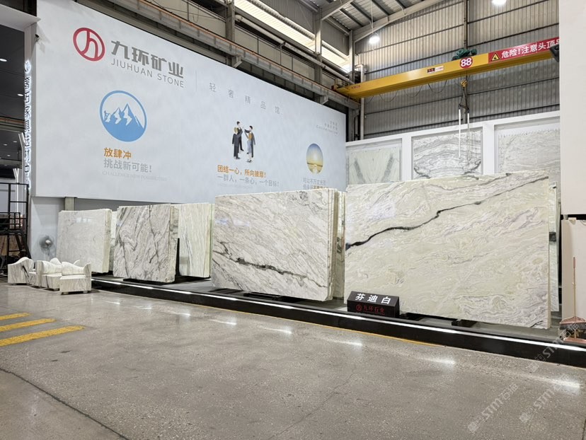 公司創(chuàng)建初期駐點(diǎn)于東升大板市場(chǎng),隨著市場(chǎng)需求,不斷進(jìn)行戰(zhàn)略布局,2016年駐點(diǎn)高時(shí)大板市場(chǎng),2017年駐點(diǎn)藝興大板市場(chǎng),同時(shí)期增加澳磊門店,2018年,九環(huán)增加遠(yuǎn)達(dá)專場(chǎng),擁有數(shù)百個(gè)架子位,憑借優(yōu)質(zhì)服務(wù)深受客戶認(rèn)可與信賴。2019年,九環(huán)于順盛增加加工點(diǎn),主要生產(chǎn)“水晶木紋”,年產(chǎn)量達(dá)15萬平方米。該年底順勢(shì)而上,增加均利廠、新寰宇廠及振南廠三個(gè)石材加工廠,并不斷拓寬市場(chǎng)品類,由原先單一的“水晶木紋”,又增拓“印度藍(lán)金沙”與“土耳其星月白”兩個(gè)大理石品種,年產(chǎn)量接近30萬平方米,公司經(jīng)營得到進(jìn)一步優(yōu)化。2020年九環(huán)石業(yè)進(jìn)軍南翼點(diǎn),新增“卡索灰”及“古堡藍(lán)”兩個(gè)大理石品種,擁有自己的大型礦山開采權(quán),自主開采銷售,產(chǎn)品種類大幅度增加,業(yè)務(wù)領(lǐng)域進(jìn)一步拓展。2021年至今,九環(huán)石業(yè)新增澳盛點(diǎn),新增品種“卡地亞灰”包礦。至此,九環(huán)石業(yè)在“世界石都”水頭戰(zhàn)略版圖囊括了澳盛、新寰宇、東升、遠(yuǎn)達(dá)等駐點(diǎn),具備良好的區(qū)位優(yōu)勢(shì),發(fā)揮著重要的協(xié)同效應(yīng)。\