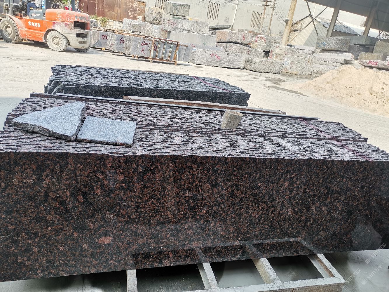 專業(yè)從事進口花崗巖荒料,板材的生產(chǎn),加工,銷售為一體的石材公司.公司擁有9臺大切機,月產(chǎn)量50000平方米。 公司生產(chǎn)的主要產(chǎn)品有:工程板,薄板,大、小規(guī)格板,條板,等石材制品.(承接國內(nèi)外幕墻工程,出口定單!接單能力:20000平方/單) 公司長年供應(yīng)的石材品種有: 英國棕等進口花崗巖為主的四十多個石材品種。各種石材,量大從優(yōu)?。?!