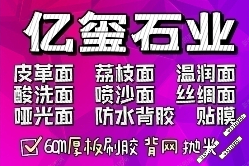 石材企業(yè) > 億璽皮革面麻布面荔枝面高壓水沖掃描貼膜背膠