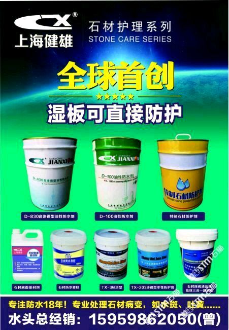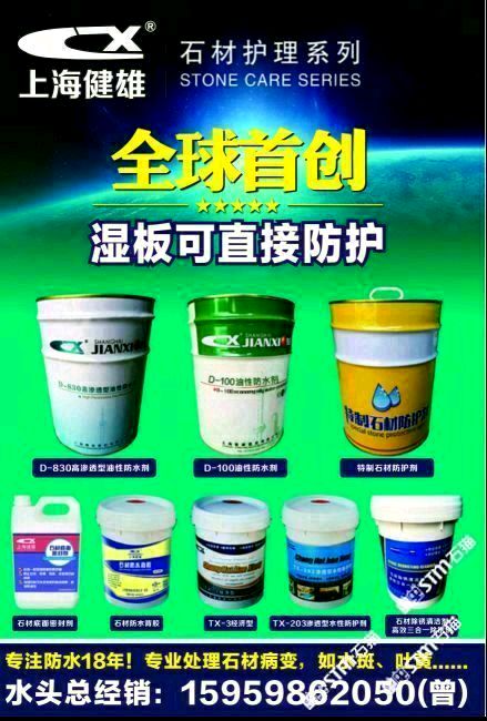 上海健雄建材有限公司成立于1998年,是上海一家從事石材養(yǎng)護(hù)方面研究的專(zhuān)業(yè)機(jī)構(gòu),致力于新型有機(jī)硅表面活性材料的開(kāi)發(fā)和合成,達(dá)到有機(jī)硅的防護(hù)效果!本公司針對(duì)石材品種打造各種石材養(yǎng)護(hù)劑和石材病變處理劑化學(xué)品,能適應(yīng)于客戶(hù)高質(zhì)量的要求,以質(zhì)量為核心的理念服務(wù)于各種石材企業(yè)!