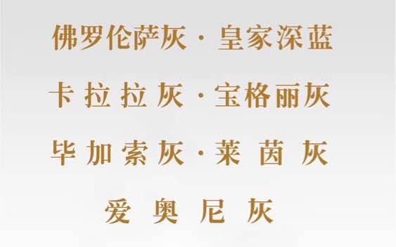 【藍(lán)金沙白金沙】【卡拉拉白】【雪花灰】【皇家深藍(lán)】【喜馬拉雅灰】【卡拉拉灰】【愛奧尼灰】【佛羅倫薩灰】