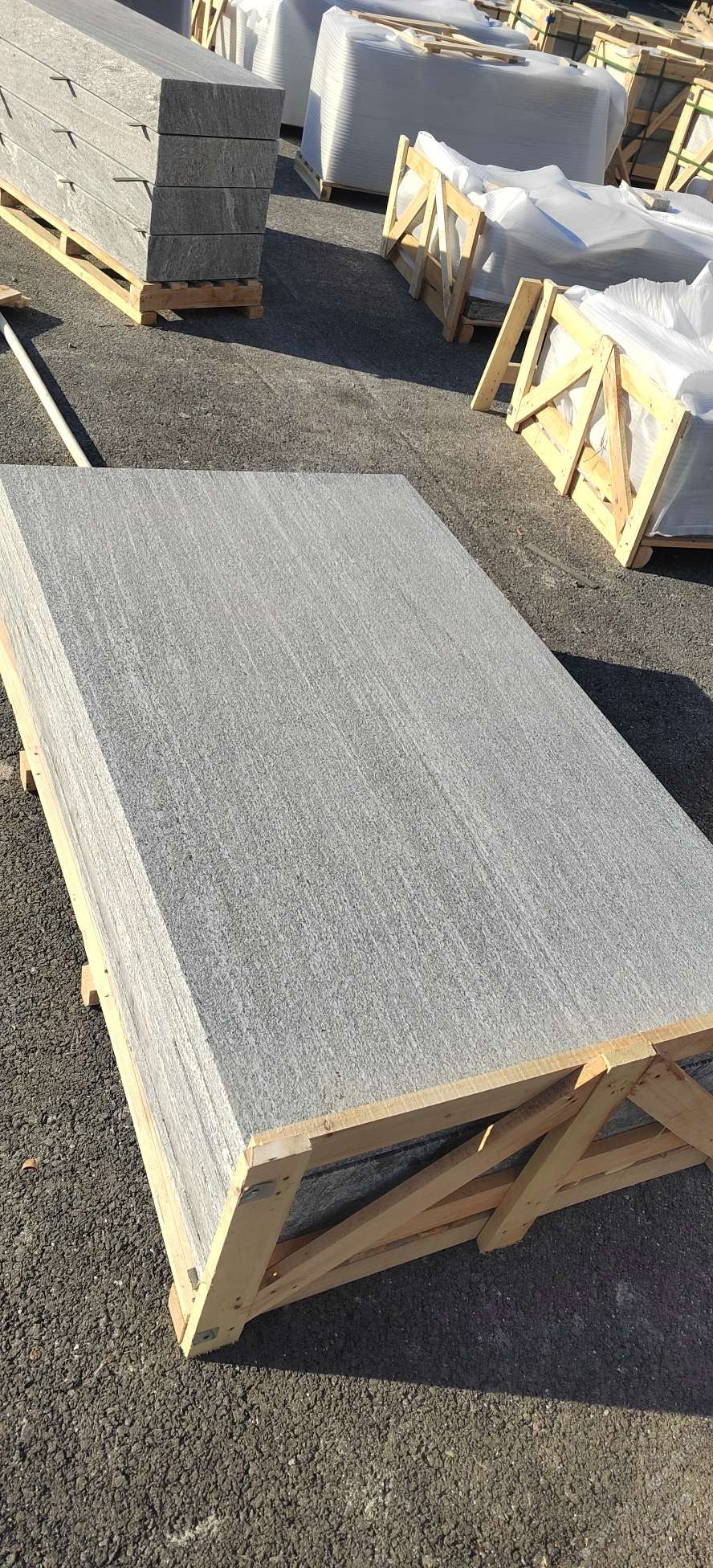 專注歐美訂單出口 服務廈門及山東貿(mào)易公司 工廠共有大切34臺 定做塔式大切2臺 可以3500×1450×15mm 厚度±1mm 年出口山水巖 山東654 70萬㎡。