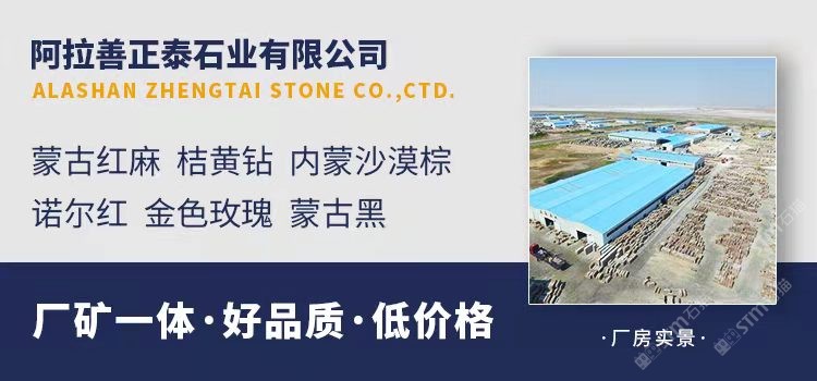 正泰石業(yè)位于內(nèi)蒙古阿拉善左旗吉蘭泰萬畝石材工業(yè)園內(nèi),離寧夏銀川210公里,離全國大的吉蘭泰鹽湖1公里,這里交通發(fā)達,廠區(qū)門口是巴一吉一級公路,廠區(qū)后面是中鹽集團吉蘭泰鐵路專線。公司礦山及廠房占地400多畝,擁有內(nèi)蒙古金世紀公司多處礦區(qū),品種豐富,有蒙古紅麻,桔黃鉆,內(nèi)蒙沙漠棕,諾爾紅,金色玫瑰,蒙古黑等多種礦體。公司期已投入資金3800萬元,擁有大型礦山鋸10臺,年產(chǎn)荒料10萬立方米。擁有標準廠房近萬平方米及大型液壓組合鋸機12臺、20頭全自動磨光機2臺、自動磨邊機、自動切邊機等先進生產(chǎn)設備。專業(yè)生產(chǎn)、加工各種花崗巖、各種規(guī)格的薄板、厚板、臺面板、大板、工程板及沿路石加工等。年產(chǎn)100多萬平方米各種板材。公司擁有石材行業(yè)先進的技術(shù)和豐富的經(jīng)驗,采用國內(nèi)的石材機械設備、引進各類高素質(zhì)的專業(yè)人才、制定嚴格的質(zhì)量管理體系,不斷地開發(fā)出品種多樣的高品質(zhì)石材產(chǎn)品。公司員工達100多人,其中中層管理人員10多人,具有專業(yè)管理經(jīng)驗。生產(chǎn)上秉承“以人為本、團隊合作”的管理理念,創(chuàng)造一種“質(zhì)量為首、奮發(fā)向上”的企業(yè)文化,“長遠發(fā)展、求新求精、互利合作、共享成果”的經(jīng)營理念。以“顧客至上、以質(zhì)取勝”的服務宗旨,真誠的期待您攜手共創(chuàng)輝煌。