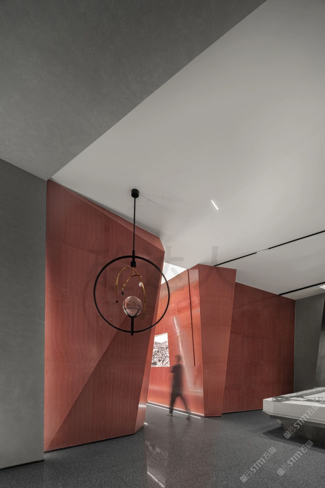 發(fā)布信息: 紅色淺紋洞石運(yùn)用室內(nèi)墻面,異型拼接無縫處理