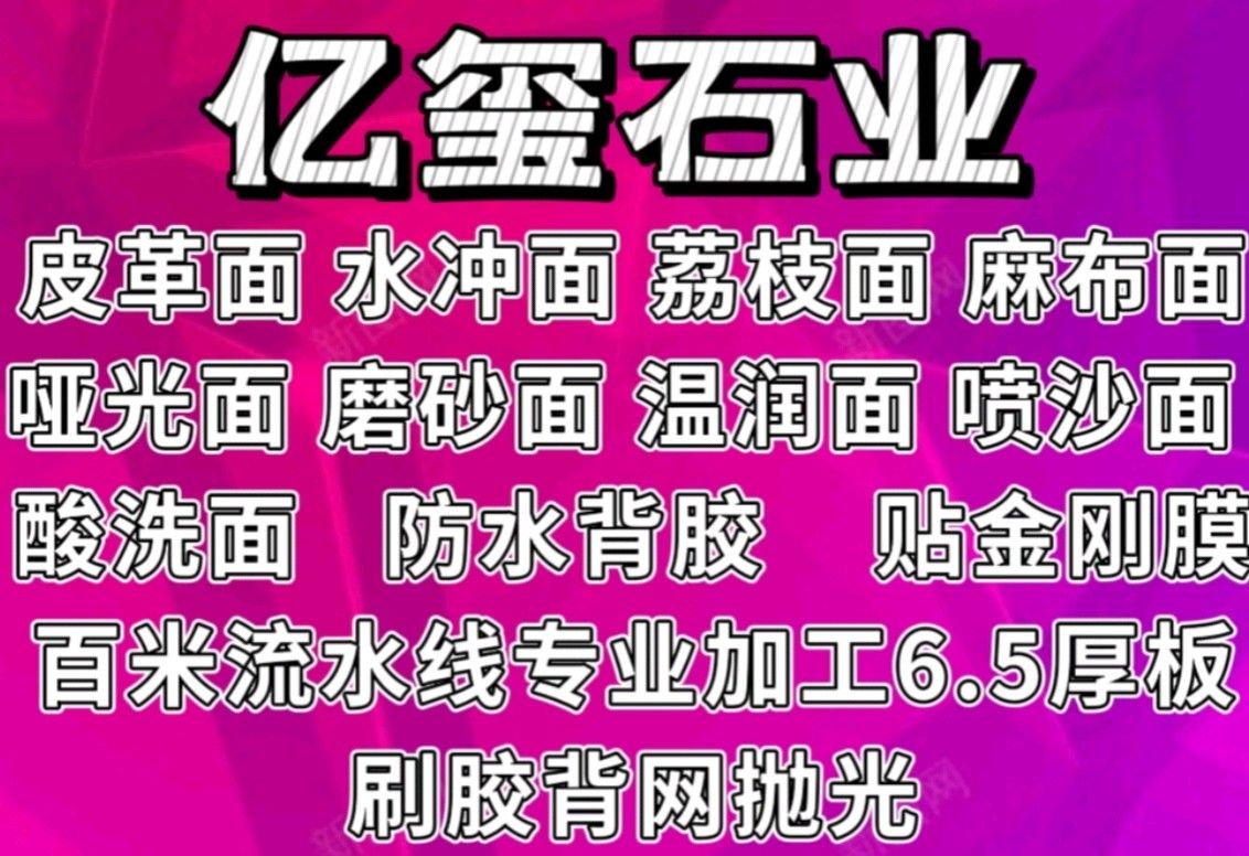 發(fā)布信息: 專業(yè)加工皮革面 大板荔枝面 酸洗面 高壓水沖面 噴沙面 溫潤(rùn)面 6CM厚板刷膠拋光 啞光面 磨砂面 貼金剛膜 奢石打網(wǎng)布 防水背膠 掃描 拉絲面 水頭曾莊匯恒C5 17750877905