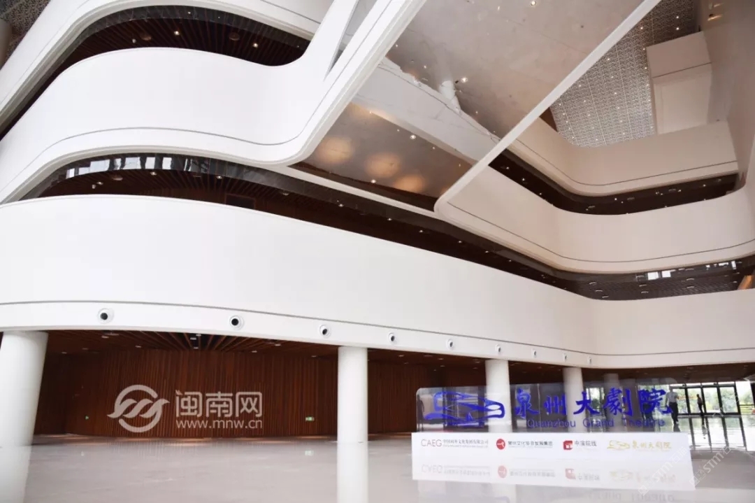 發(fā)布信息: 泉州大劇院整體設計猶如市花“刺桐花”的泉州市公共文化中心,環(huán)灣面海,欣欣向榮。公共文化中心位于東海片區(qū)山海中軸線中段,毗鄰泉州市政府,四大主體文化場館泉州科技與規(guī)劃館、東海工人文化宮、泉州大劇院、泉州圖書館一起成為“亞洲多元文化發(fā)展中心”。自2015年8月項目啟動建設以來,倍受泉州市民關注,這里將成為文化新家園。 “四朵花瓣”之一的泉州大劇院即將于2019年6月30日率先揭幕。 18日上午, 泉州大劇院舉行了 開幕演出季新聞發(fā)布會。 坐落于東海的泉州市公共文化中心 “四朵花瓣”之一的“海絲之花” 率先揭開了神秘面紗。 室內(nèi)設計延續(xù)外立面元素, 抽取海洋元素疊浪與海面波光等為設計意向, 水平向的穿孔鋁板像絲綢一般輕盈通透, 表達出舞蹈的節(jié)奏與音樂的韻律, 也體現(xiàn)出泉州作為“海上絲綢之路”起點城市的文化特點。“海絲樂章”為設計主題, 建筑外立面設計采用雙層表皮結構, 內(nèi)層為玻璃幕墻,外層為金屬穿孔鋁板表皮, 水平方向的波浪形曲線設計室內(nèi)設計延續(xù)外立面元素, 抽取海洋元素疊浪與海面波光等為設計意向, 水平向的穿孔鋁板像絲綢一般輕盈通透, 表達出舞蹈的節(jié)奏與音樂的韻律, 也體現(xiàn)出泉州作為“海上絲綢之路”起點城市的文化特點。