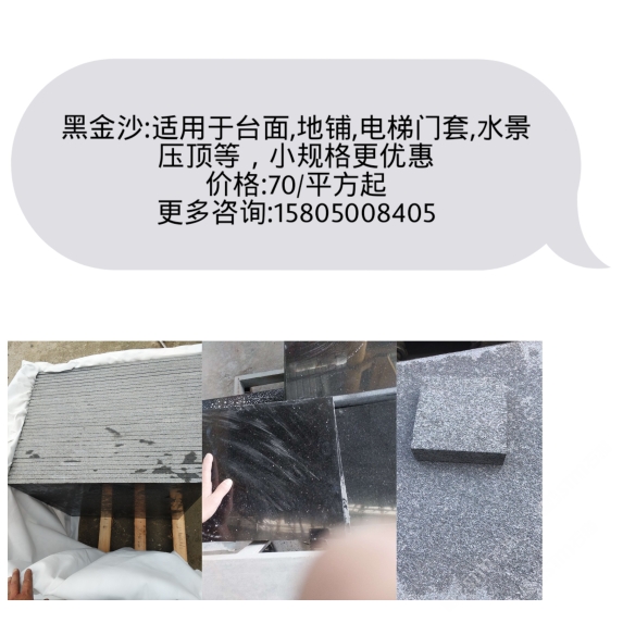 發(fā)布信息: 印度紅,黑金沙,英國(guó)棕,美國(guó)紅麻,綠星,金鉆麻等進(jìn)口花崗巖 黑金沙成品70元起 英國(guó)棕成品60元起 承接: 臺(tái)面,樓梯,過門石,線條, 異形,火燒面,荔枝面,等園林地鋪規(guī)格板。 可按你需要的尺寸,方量大小,為你訂切。 電話15805008405 13850716470 微信同號(hào), 以質(zhì)量求生存,以優(yōu)惠為前提,以誠信守未來