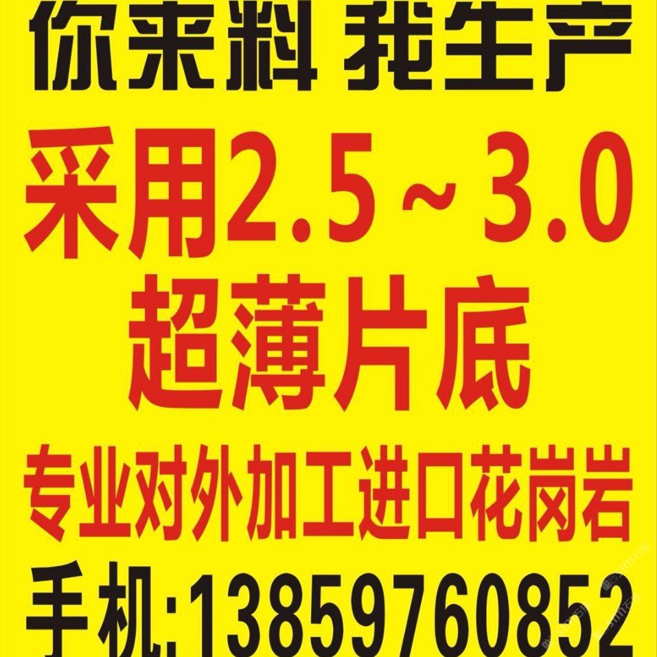 發(fā)布信息: 一、大量生產(chǎn)5/8/10毫米花崗巖超薄板 二、3.0鋸片對(duì)外加工市場(chǎng)板工程板 【福建超悅石材薄板節(jié)能科技有限公司】 歡迎來料加工13859760852