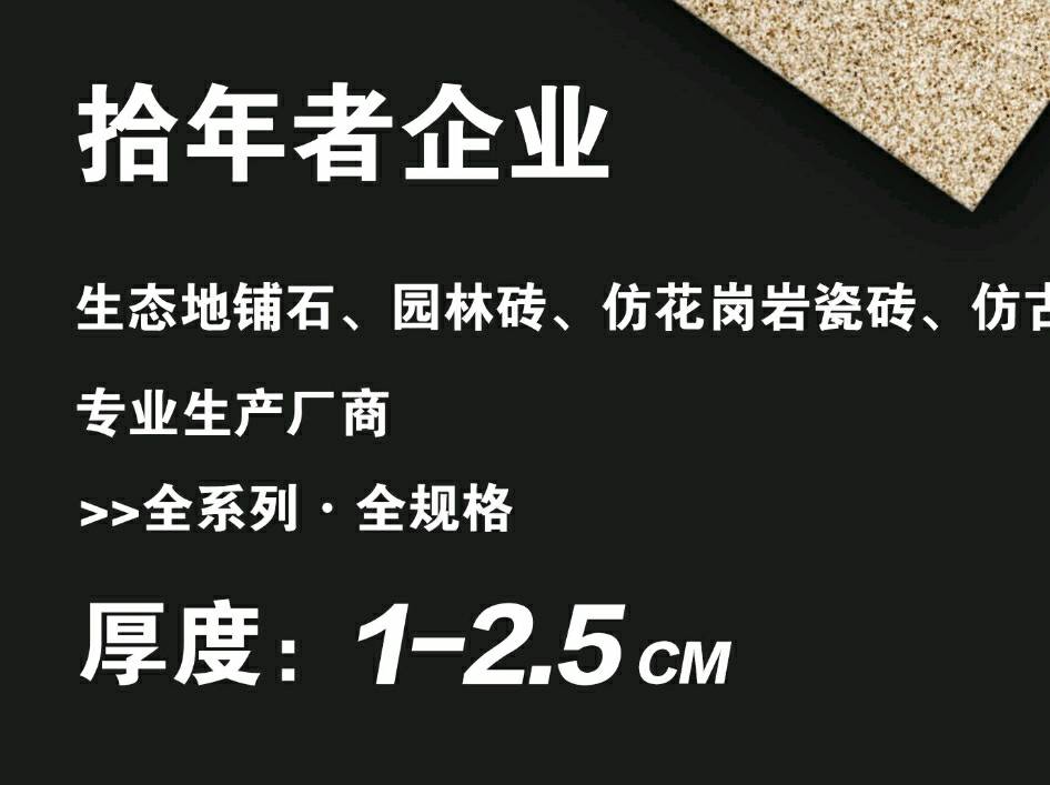 發(fā)布信息: 拾年者生態(tài)地鋪石 厚度:1.0/1.2/1.5/1.8/2.0cm 規(guī)格:30*60/60*60/60*90/60*120 適用:園林地鋪/市政工程/幕墻干掛 花色規(guī)格靈活定制 專線生產(chǎn) 工藝齊全 竭力服務(wù)云貴川渝優(yōu)質(zhì)工程項(xiàng)目 歡迎咨詢:周13902181971,陳13996029567