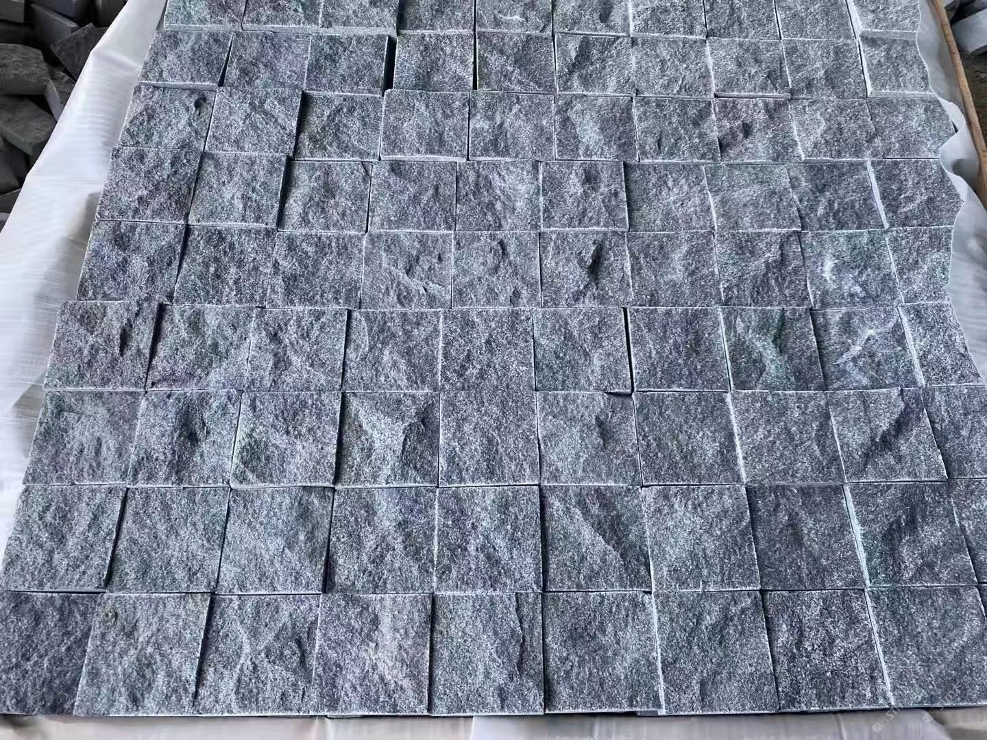 芝麻黑蘑菇石背景墻G654電視背景墻深灰麻章丘黑石