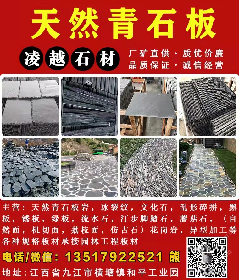 發(fā)布信息: 主營,冰裂紋,文化石,亂形碎拼,黑板,銹板,綠板,流水石,汀步腳踏石,蘑菇石,(自然面,機(jī)切面,荔枝面,仿古石)花崗巖 異型加工等各種規(guī)格板材承接園林工程板材。歡迎新老客戶的支持。購電話13517922521(微信同號)