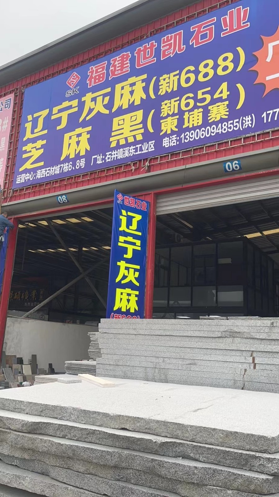 福建世凱石業(yè) 聯(lián)系人:洪先生    139****4855 查看 手機(jī)號(hào)碼:無 主營范圍: 大板批發(fā)、荒料、花崗巖加工、異型加工、礦山、 企業(yè)地址:福建泉州南安市水頭鎮(zhèn)海西石材城花崗巖7棟6-8號(hào)