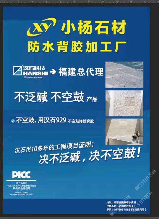 發(fā)布信息: 各種石材防水背膠、加厚、貼膜、藝術(shù)面、各種石材大板鏟網(wǎng)。 工地地鋪(十幾年技術(shù))?130不返堿,不空鼓添加劑,花崗巖濕貼原材料,929彈性背膠(水磨石、人造石),919密封劑界面劑 一直都在售賣中 ?19160675888楊?13778795789楊