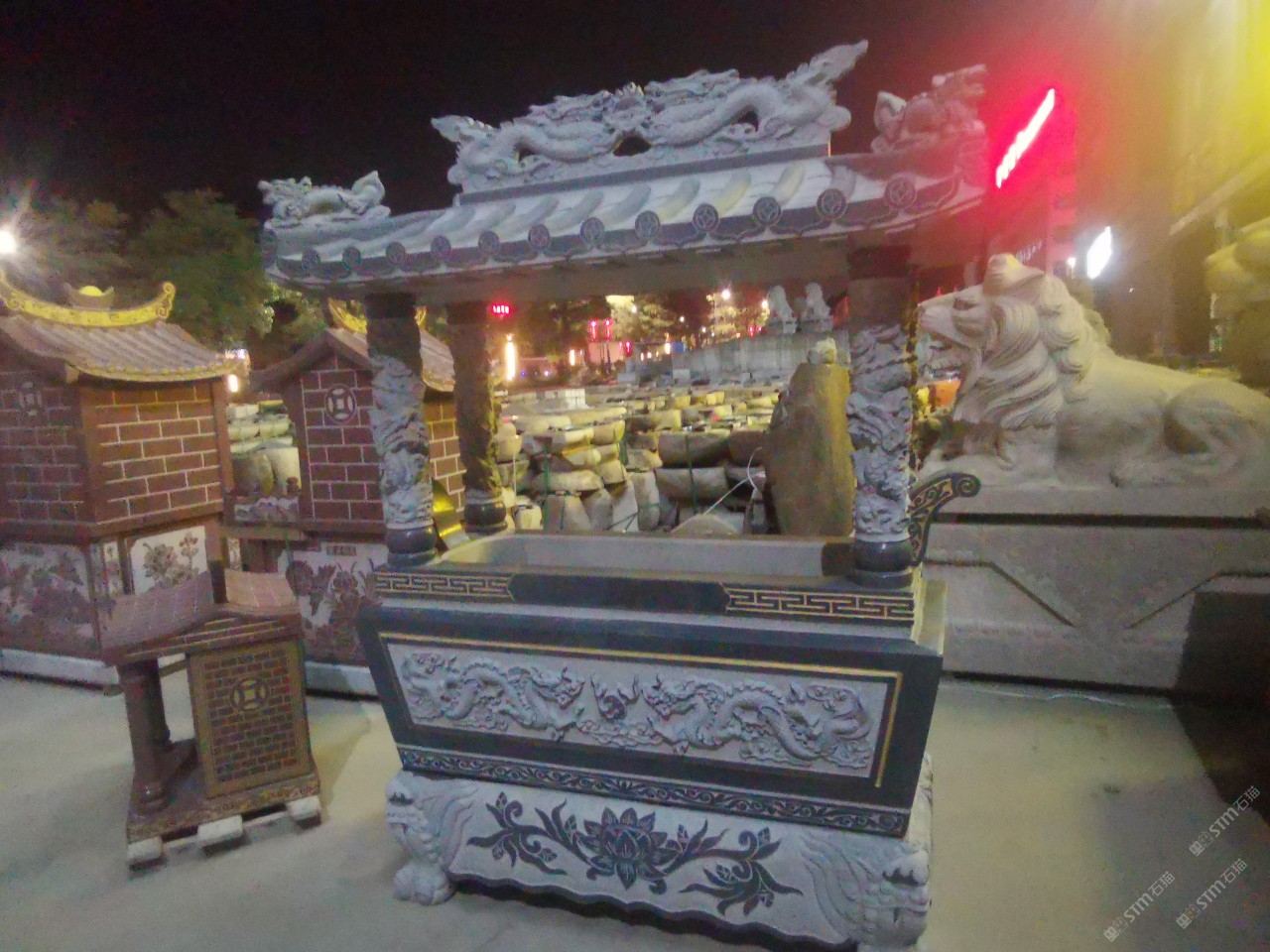 石六角亭,石香爐,石牌匾,龍龜石桌,石材功德牌