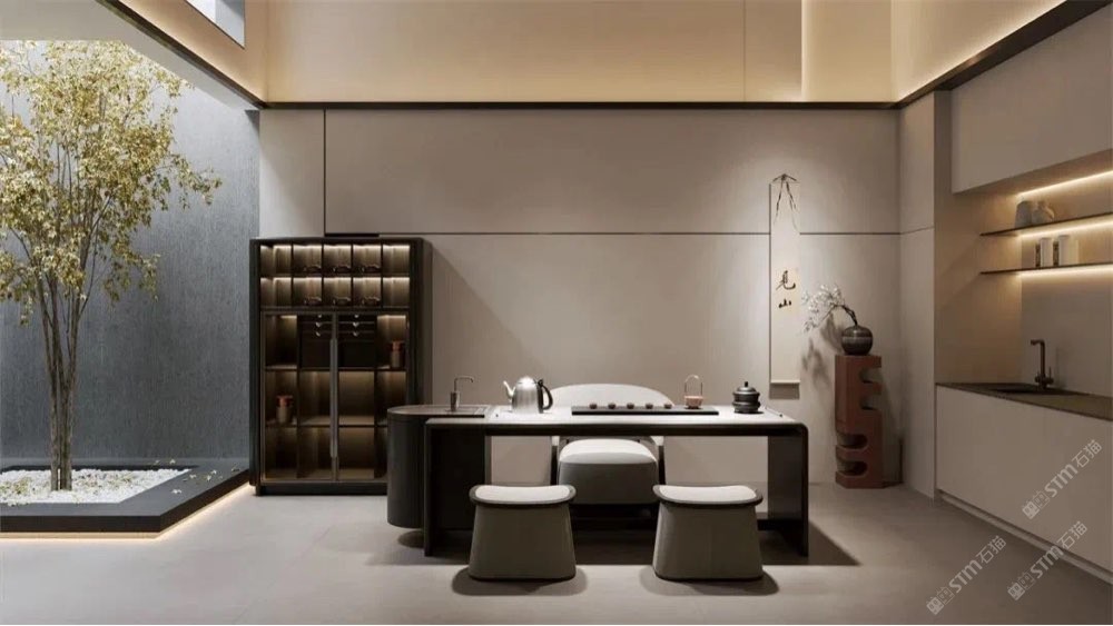 奢石與實(shí)木相互輝映,打造低調(diào)的奢華。