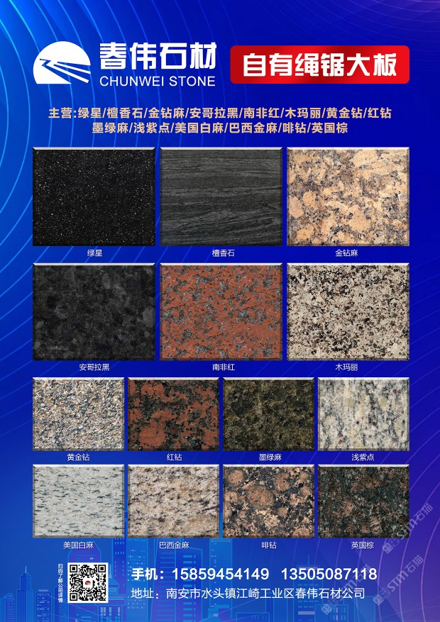 春偉石業(yè):印度紅/美國紅紫晶美國灰麻/繩鋸大板