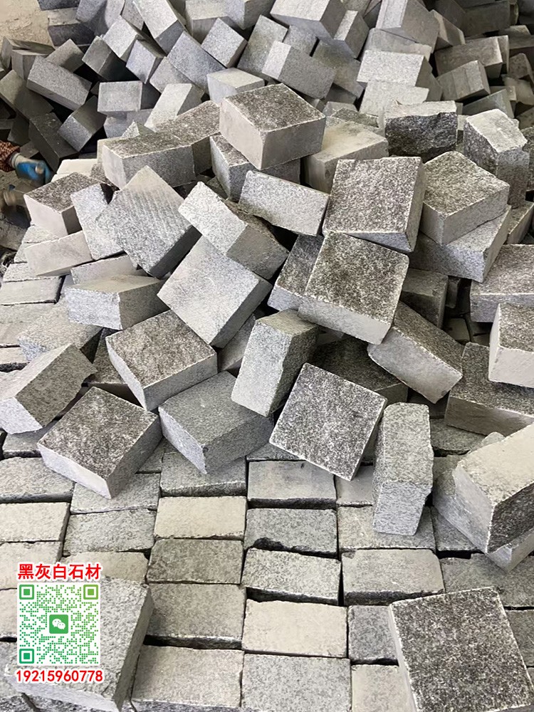 芝麻黑火燒面小方塊馬蹄石彈石園林地鋪石芝麻灰芝麻白