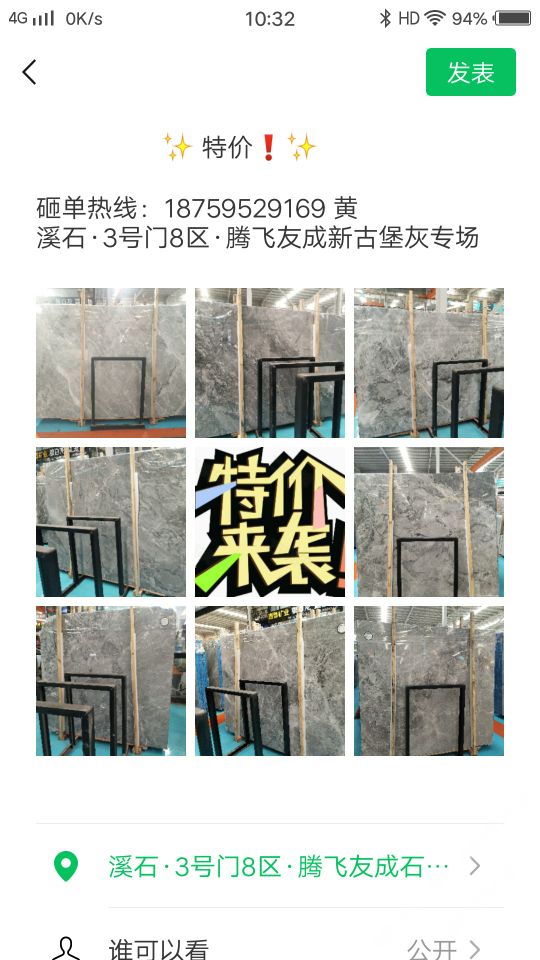 發(fā)布信息: 感恩回饋新老客戶 場(chǎng)上部分板面特價(jià)出售 溪石三號(hào)門(mén)八區(qū)騰飛友成新古堡灰專(zhuān)場(chǎng) ?18759529169