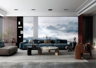 唐馳巖板定制 新中式背景墻裝修