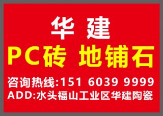 華建PC磚地鋪石主營(yíng)產(chǎn)品:福鼎黑(PC磚),黃金麻(PC磚),貴妃紅(PC磚),芝麻白(PC磚),中國(guó)黑(PC磚),芝麻灰(PC磚),章丘黑(PC磚),珍珠白(pc磚),G623(PC磚),G633(PC磚),G654(PC磚),烏克蘭鉆(PC磚),長(zhǎng)泰芝麻黑(pc磚),麻城芝麻白(pc磚),隨州黃金麻(pc磚),蝦紅荔枝面(PC磚),芝麻灰荔枝面(PC磚),G654荔枝面(PC磚),芝麻白(石英磚/PC磚),喬治亞灰荔枝面(PC磚),銹石荔枝面(PC磚),黃金麻荔枝面(PC磚),霞紅荔枝面(PC磚),地鋪石(pc磚)企業(yè)地址:福建泉州水頭福山工業(yè)區(qū)華建陶瓷