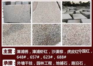 廈門(mén)高厝樓進(jìn)出口有限公司主營(yíng)產(chǎn)品:漳浦銹,漳浦蝦紅,漳浦紅G648,G684(火燒面),新G684,中國(guó)黑,蒙古黑,沙漠棕,天鵝白,G623,G688,虎皮白,虎皮紅,羅源紅G664企業(yè)地址:福建南安豐隆加油站往水頭方向200米處