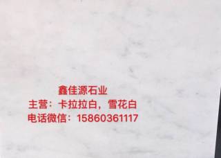 鑫佳源石業(yè)主營產(chǎn)品:卡拉拉白,雪花白,卡拉拉白2,卡拉拉白1,意大利卡拉拉白,雪花白2,雪花白3,小雪花白(細紋雪花白),細紋雪花白,意大利雪花白企業(yè)地址:福建泉州南安市濱海大道中閩地磅威利石材加工廠